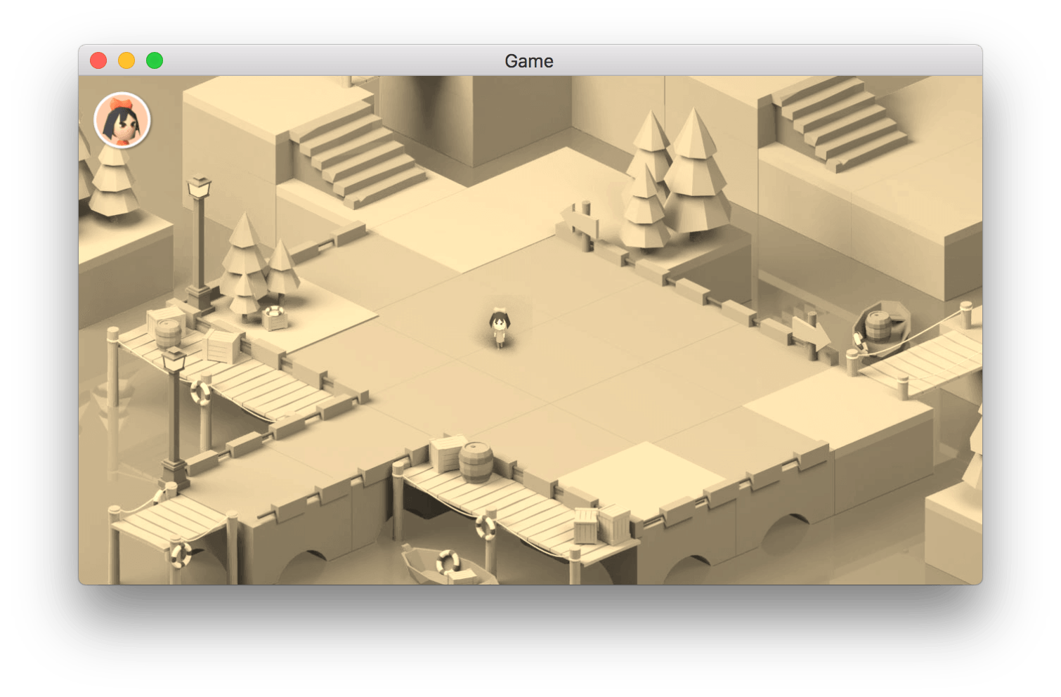 You can add effects to the layers of your scene. These effects allow you to quickly change the atmosphere and rendering of your game. For example, here is the sepia effect added to the isometric-game example: