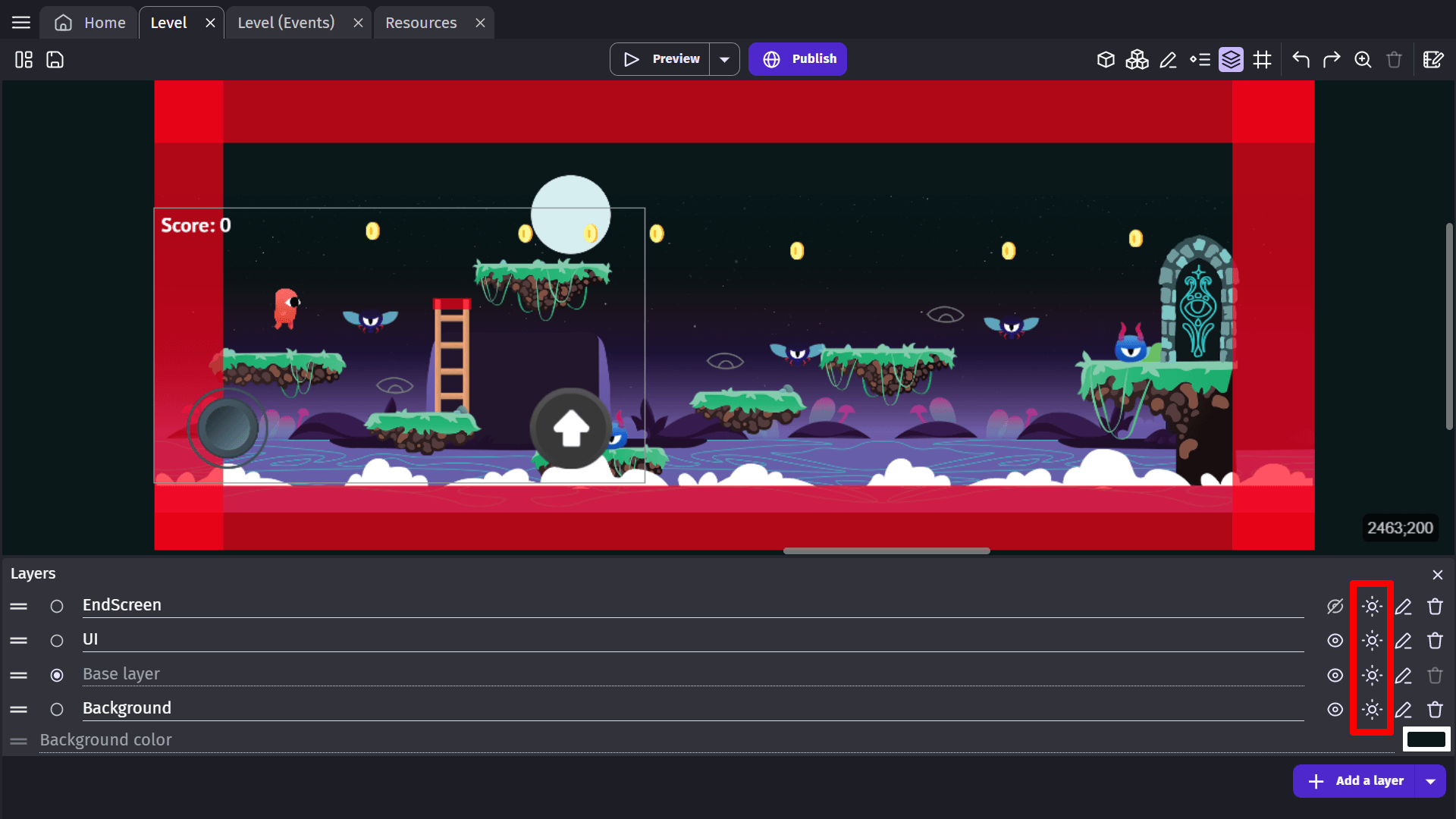 For example, if you have a Background layer, the base layer and a UI layer (showing the interface of the game), you might want to add effects to the Background layer and the base layer - but not to the UI layer.